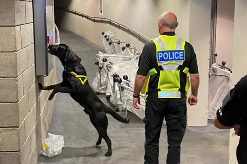 Police dog and handler working with Police Scotland during National Canine Training Exercise at Scottish Event Campus ahead of COP26 [Crown Copyright.]