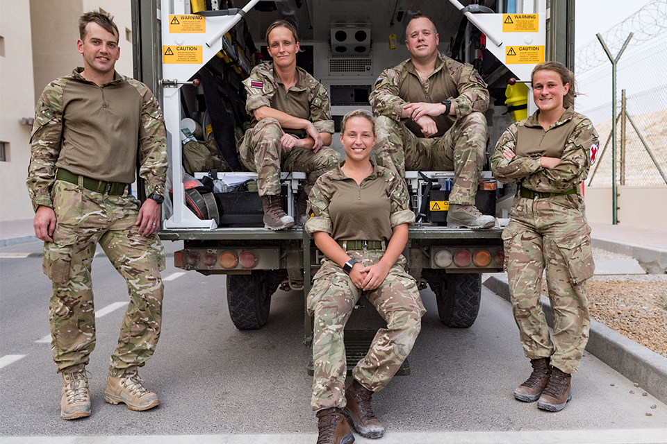 Members of the Joint Medical Group pose by their ambulance © MOD Crown Copyright
