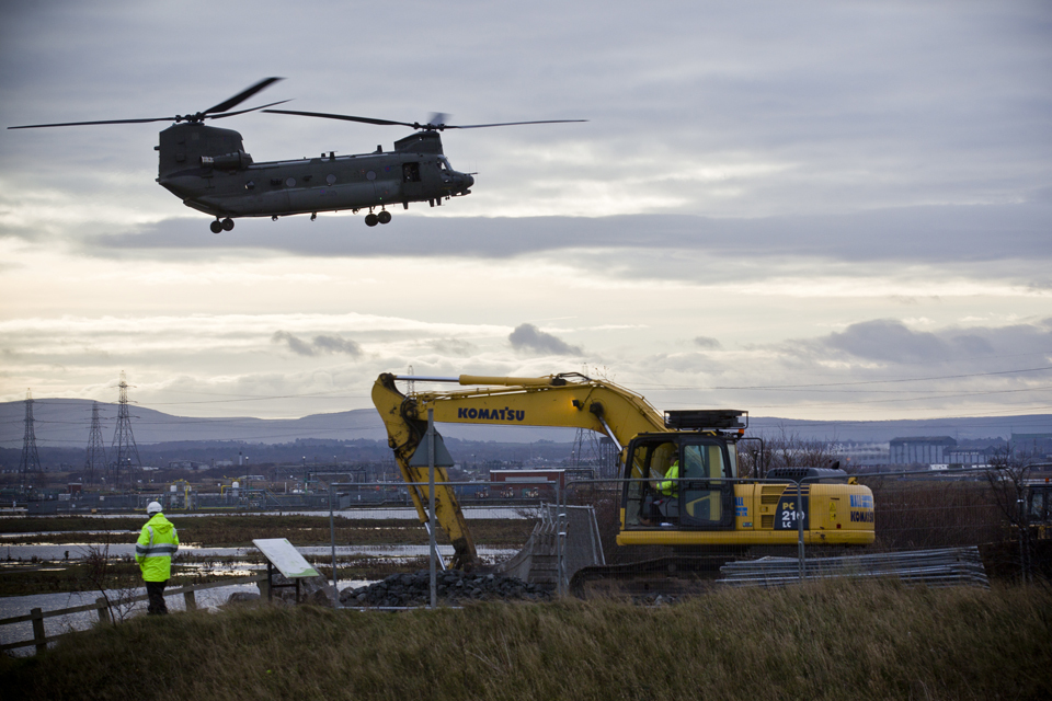 In one operation a Chinook helicopter lifted tonnes of sandbags into a 30-metre breach in sea defences in Middlesbrough before the arrival of high tide.