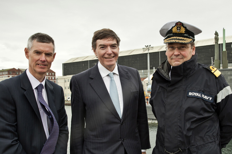 John Hudson, Managing Director of BAE Systems Maritime - Submarines, Philip Dunne, and Director Submarines Rear Admiral Simon Lister (library image) [Picture: Mike Vallance, BAE Systems]