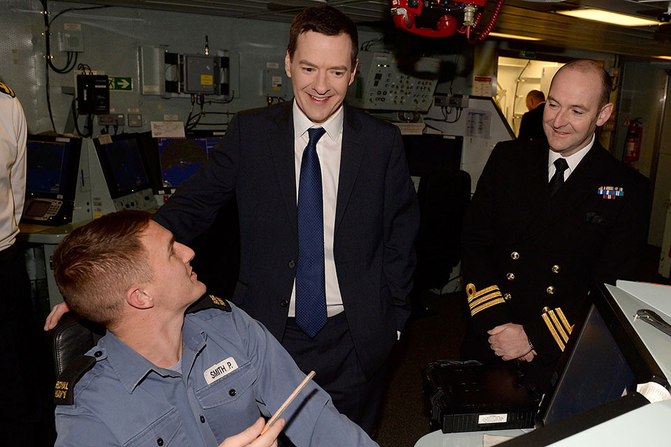 Able Seaman Peter Smith meets the Chancellor George Osborne on board HMS Defender in Portsmouth [Picture: Leading Airman (Photographer) Nicky Wilson RN, Crown copyright]