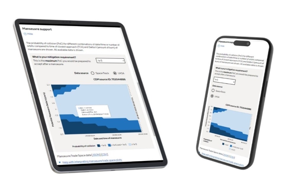 The National Space Operations Centre (NSpOC) provides collision warnings to UK operators. We have now made a significant advancement in this area with the launch of a new manoeuvre support feature called Manoeuvre Trade Space Plots. These plots allow satellite operators to visualise the manoeuvre options available to them at any given time during a potential collision situation.