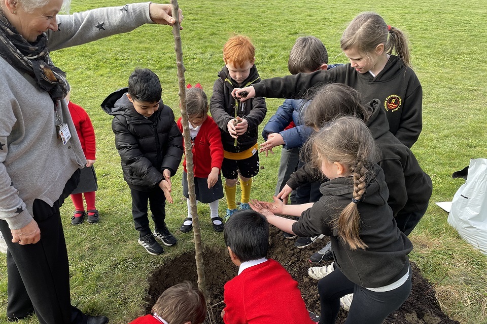 We’re really pleased to give a home to these trees as they will add to our ambition of being a Forest School, complement the original hedging from Lane Farm and extend our growing legacy for our community.