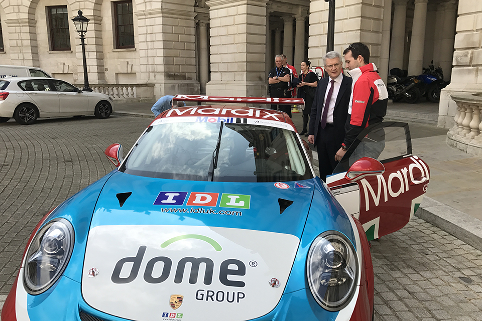 Roads Minister Andrew Jones with Tom Sharp, Porsche 2015 Rookie champion.