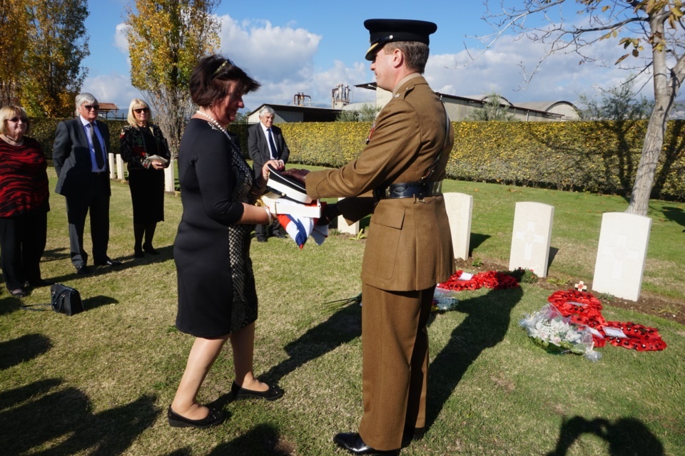 The service, organised by the JCCC, part of Defence Business Services, was conducted by The Reverend Jacob Caldwell CF, Chaplain 1st Battalion Coldstream Guards at the Commonwealth War Graves Commission (CWGC) Salerno War Cemetery, Italy.