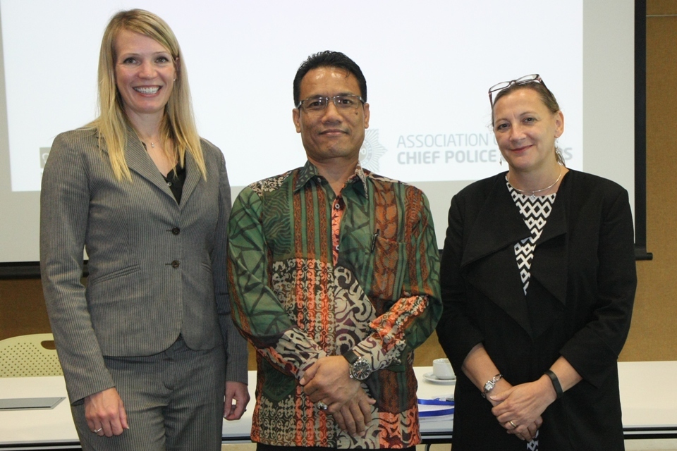 NCA Int. Liaison for SEA Stephanie McCourt, Indonesian Police Commissioner Agung Yudha Wibowo Deputy British Ambassador Juliet Maric