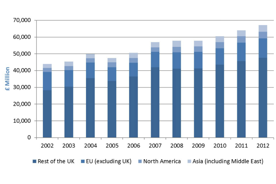 - between 2002 and 2012, the value of exports to the rest of the UK increased by 69%