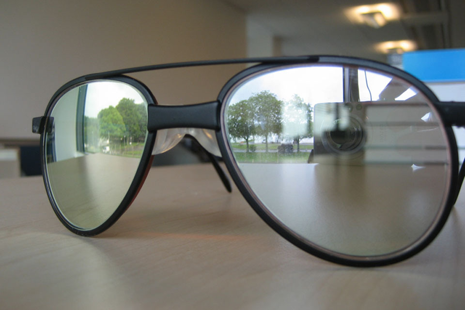 This is achieved by a composite structure comprising a polycarbonate layer, made with a special absorbing optical dye, bonded to a thin glass lens with a special coating to reflect certain wavelengths.