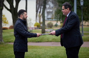 New HM Ambassador Neil Crompton presents his credentials to the President of Ukraine Volodymyr Zelenskyy