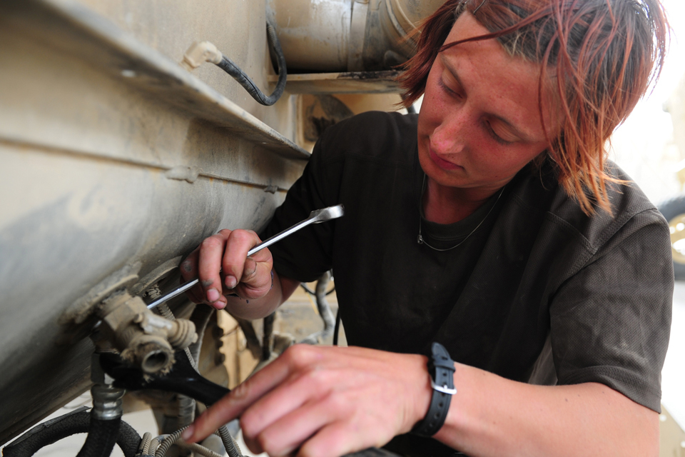 A Royal Electrical and Mechanical Engineers mechanic working on a vehicle in Afghanistan (library image) [Picture: Sergeant Alison Baskerville RLC, Crown copyright]