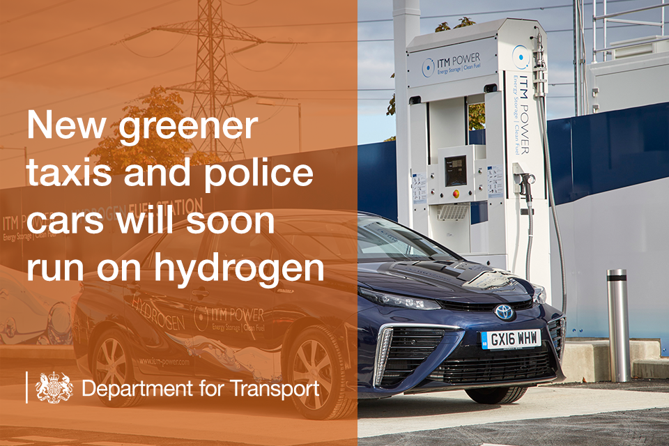 Police cars and taxis will be among nearly 200 new hydrogen powered vehicles switching to zero emission miles, thanks to a multi-million pound government boost.