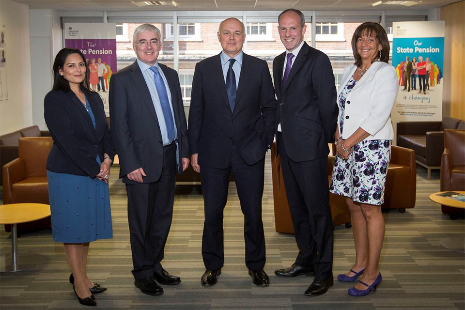 Left to right: Priti Patel, Lord Freud, Iain Duncan Smith, Justin Tomlinson and Dr Ros Altmann