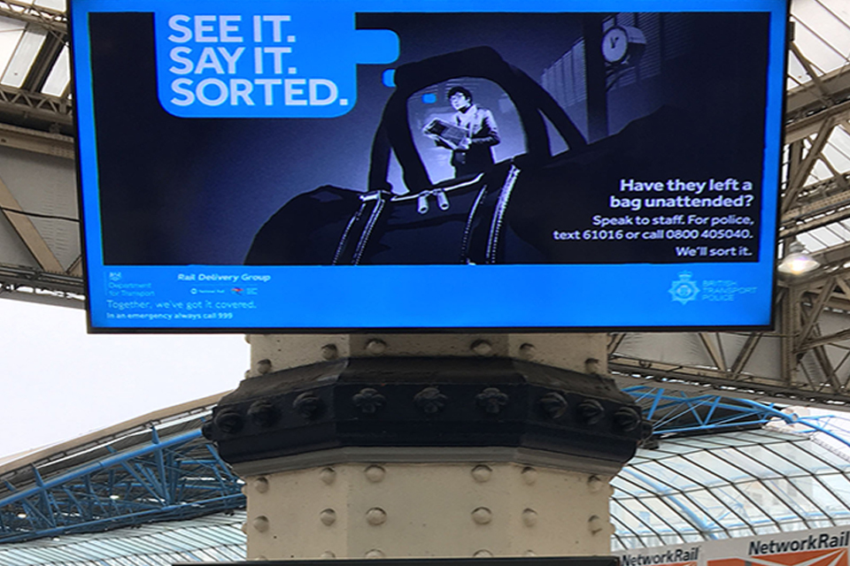 Passengers arriving at major train stations this morning in London, Birmingham, Glasgow, and Manchester will be among the first to hear updated security announcements and see posters promoting the new ‘See it. Say it. Sorted.’ campaign message.