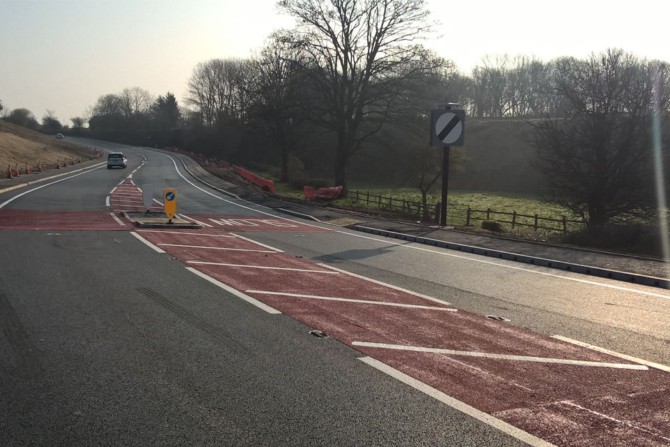 As well as building a brand new 100 metre raised and realigned section of road with eastbound and westbound carriageways, an innovative ‘infiltration’ system has also been constructed – using a 1.2 metre diameter drainage pipe to help store rain water before slowly releasing it away.