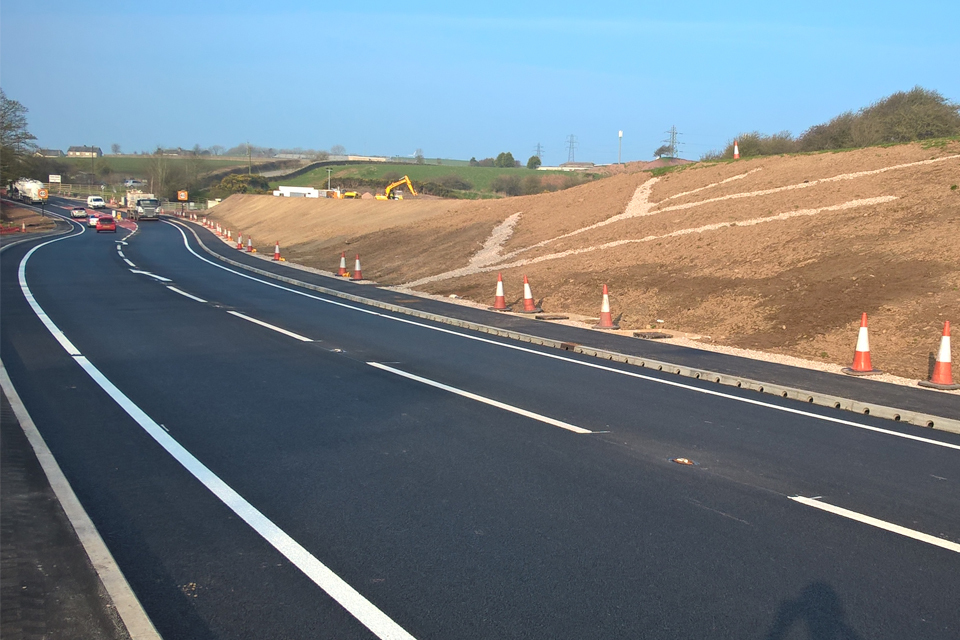 Key elements of the construction work have included moving the carriageway 7 metres north west of the previous alignment and raising it by up to almost 2 metres in places – removing the so-called Lindal ‘dip’ and solving the flooding issue which in bad weather often required temporary traffic lights to manage traffic past the rain water.
