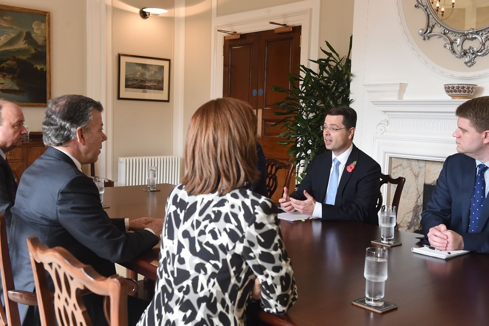 New UK government funding for a UK-Colombia strategic partnership to share expertise on peace-building was confirmed today by Secretary of State for Northern Ireland James Brokenshire as he officially welcomed the President of Colombia, Juan Manuel Santos de Calderon, to Belfast.