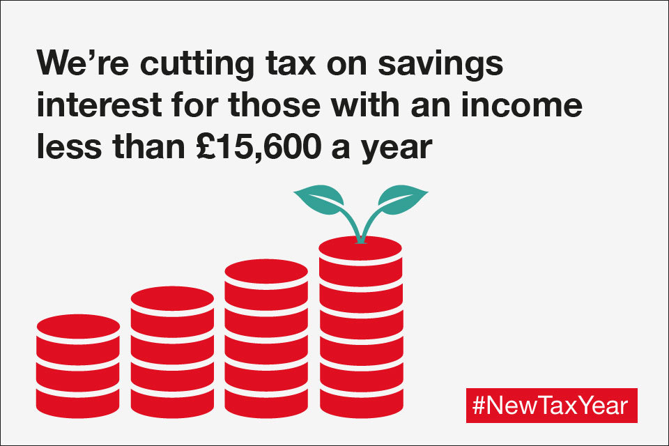 We’re cutting tax on savings interest for those with an income less than £15,600 a year.