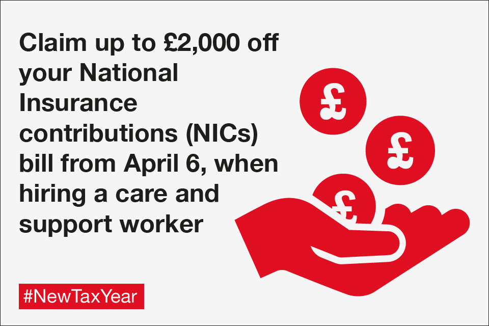 Claim up to £2,000 off your National Insurance contributions (NICs) bill from April 6, when hiring a care and support worker.