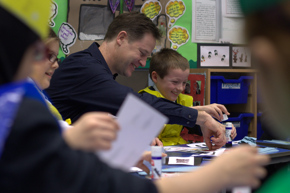 Nick Clegg at a school