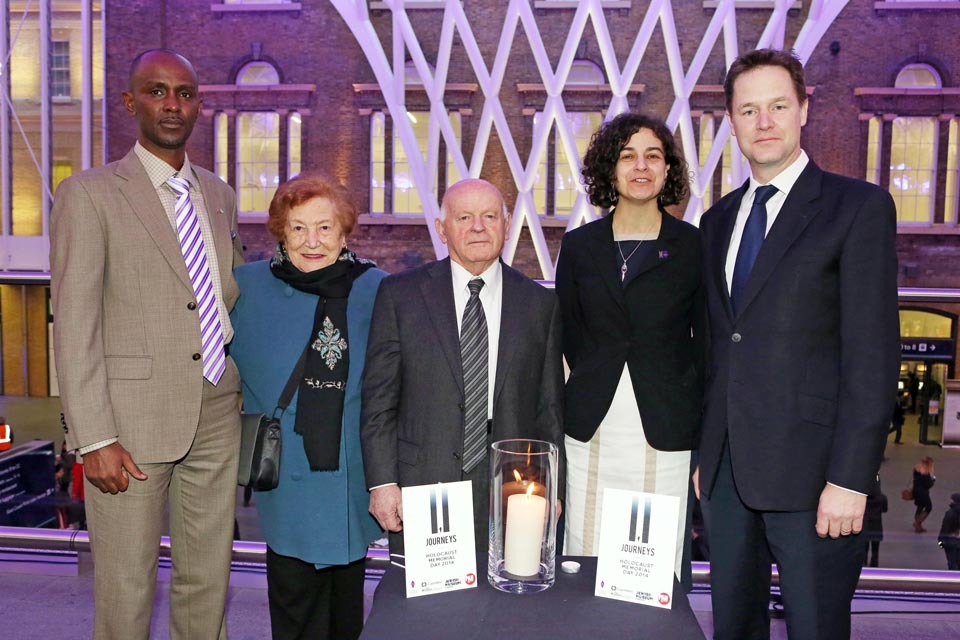 The Deputy Prime Minister attended a Holocaust Memorial Day Trust event this morning at King’s Cross station with survivors of the Holocaust Ben Helfgott MBE (Honorary President of the Holocaust Memorial Day Trust) and Sabina Miller; and Eric Murangwa, a survivor of the genocide in Rwanda who now runs an organisation called Football for Hope, Peace and Unity which uses football to unite communities.