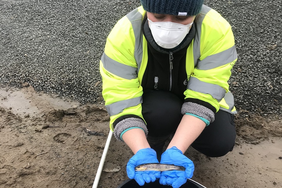 Environment Agency fisheries specialists have this week been relocating fish in this cut off stretch of river to ensure their survival. Over 250 fish have been rescued and returned to the main river, including juvenile salmon, trout and lampreys. Experts are also working with Natural England to monitor the new course and any environmental impact.