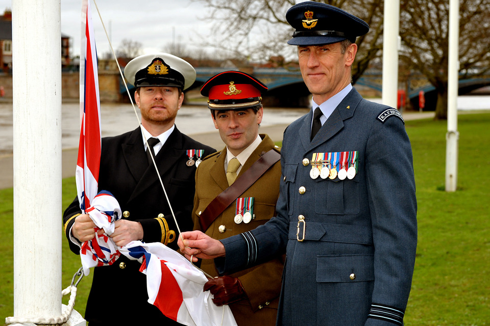 Service personnel raising the Armed Forces Day Flag in Nottingham [Picture: Corporal Gabriel Moreno RLC, Crown Copyright/MOD 2013]