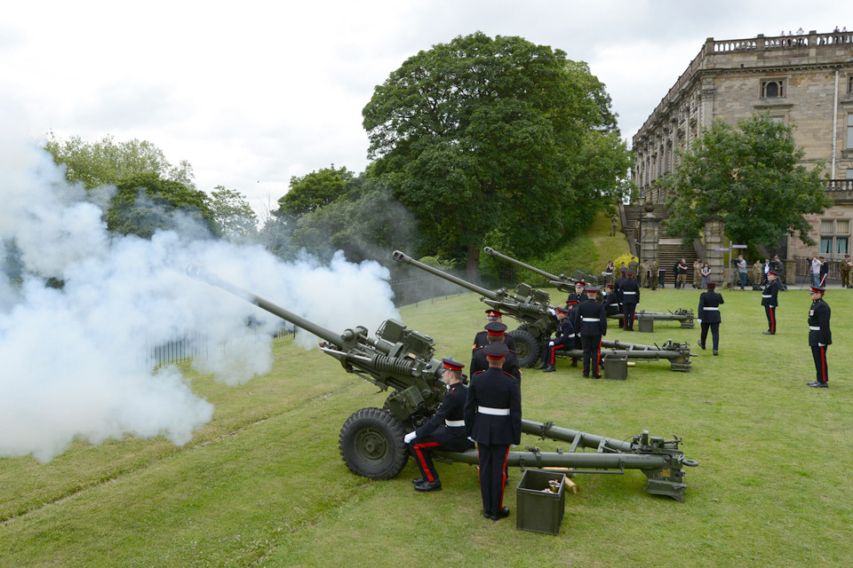 Members of 100th (Yeomanry) Regiment Royal Artillery firing their guns at Nottingham Castle [Picture: Corporal Andy Reddy, Crown copyright]