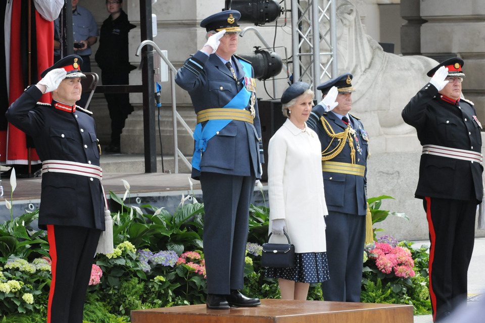 His Royal Highness The Duke of Gloucester takes the salute in the Old Market Square, Nottingham [Picture: Senior Aircraftman Steve Buckley, Crown copyright]