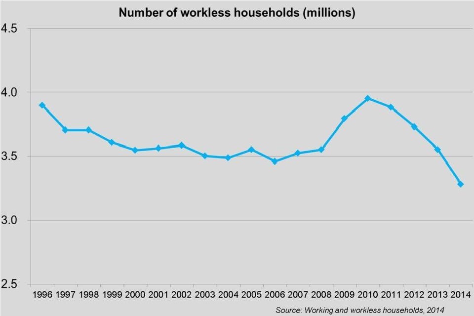 - the number of workless households has fallen by 671,000 since 2010, bringing it to a record low – there are now 271,000 fewer workless households than there were this time last year, the largest annual fall on record
