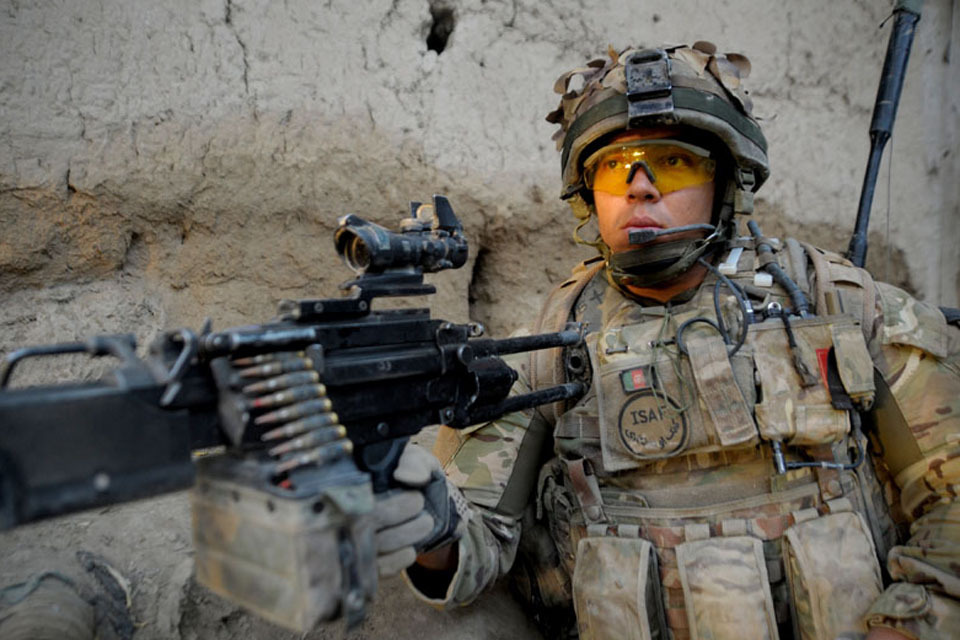 Lance Corporal Thomson and other members of the 12th Mechanized Brigade Reconnaissance Force push into the area of Shorokay during Operation DAAS [Picture: Sergeant Andy Reddy RLC, Crown Copyright/MOD 2012]