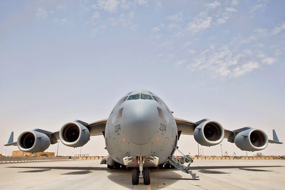 A Royal Air Force C17 transport aircraft at Camp Bastion in Afghanistan, during operations in 2014. [Picture: Crown Copyright]