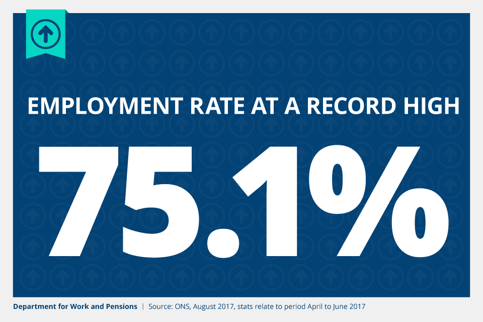 The employment rate is at a record high of 75.1% (April to June 2017).