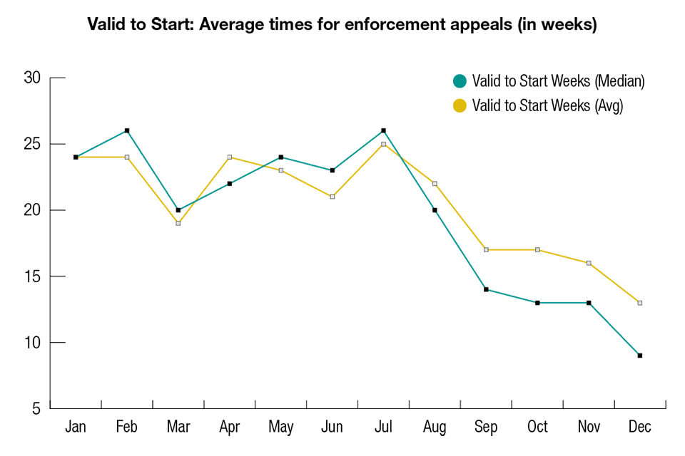 Our focus is now on handling times for Enforcement hearings and inquiries. We are expecting to see an improvement in this area later this year.