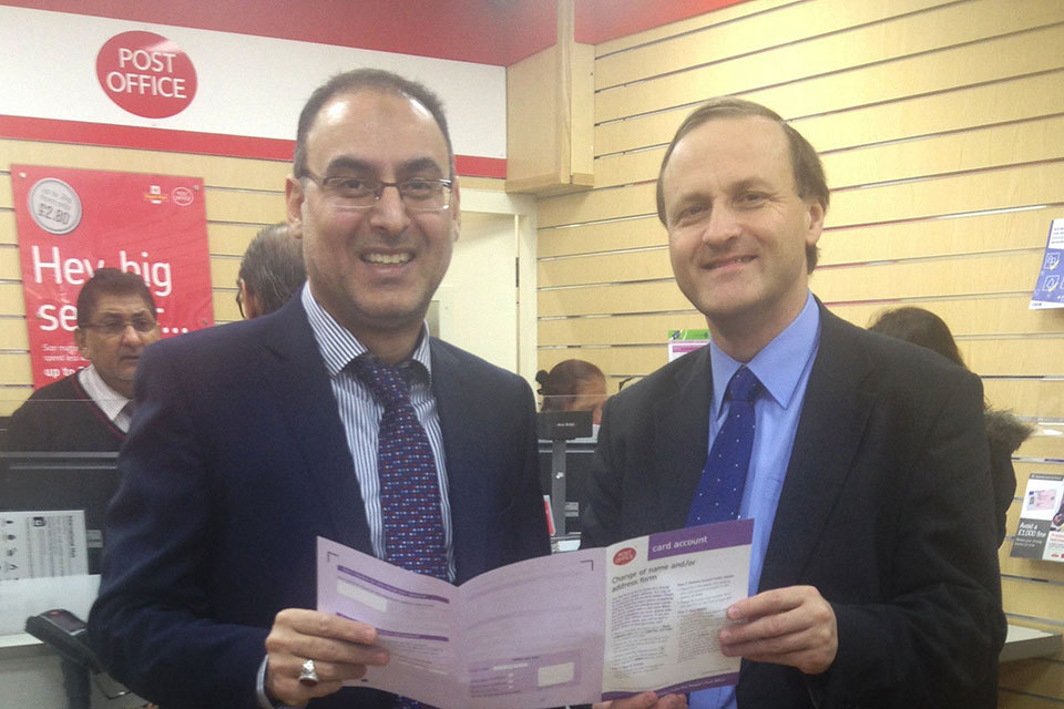 Steve Webb Minister of State for Pensions and Mohmud Ladak, SubPostmaster