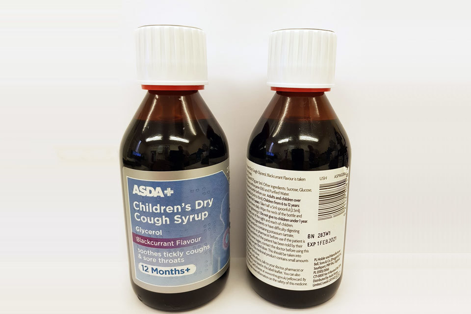 | Asda Children’s Dry Cough Syrup Glycerol Blackcurrant Flavour | 274V1, 276V1, 278V1, 283W1 | 01-Aug-2020, 01-Oct-2020, 01-Dec-2020, 01-Feb-2021 |
