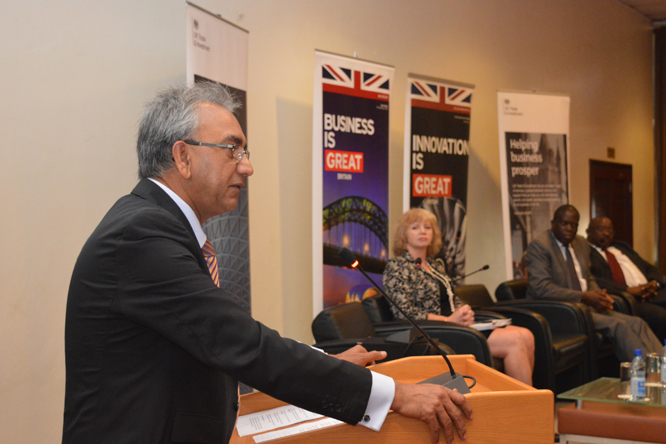 Lord Popat gives keynote speech at the breakfast meeting for British businesses in Uganda and the Ministry of Trade.