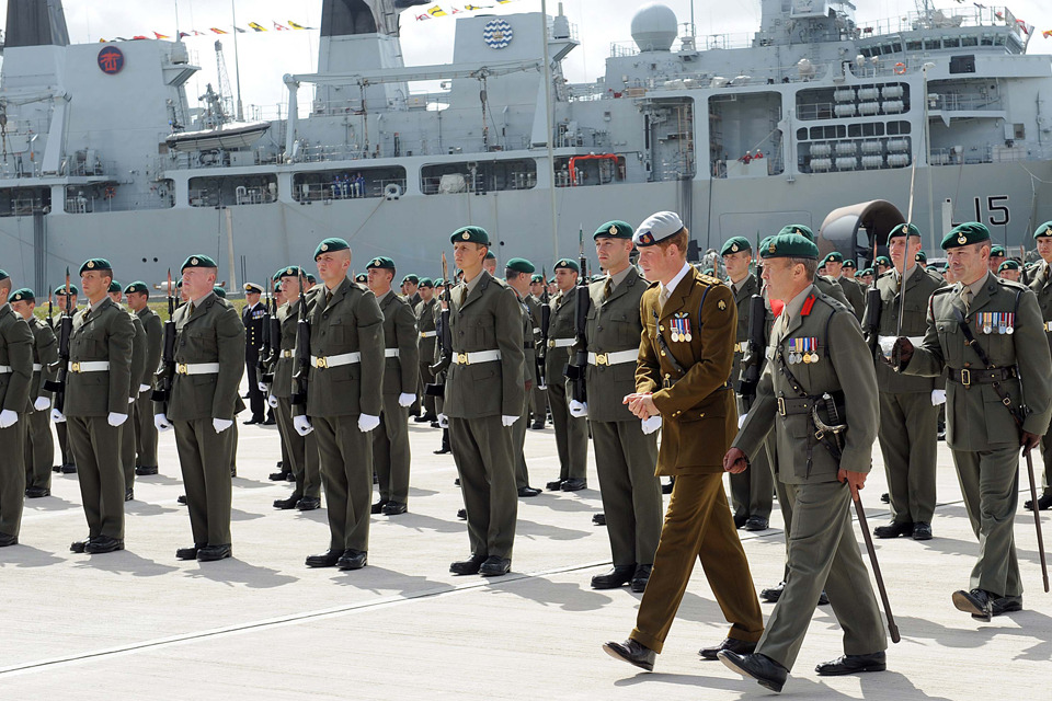Prince Harry reviews the parade of 1 Assault Group Royal Marines personnel [Picture: Chief Petty Officer (Photographer) Rob Harding, Crown copyright]