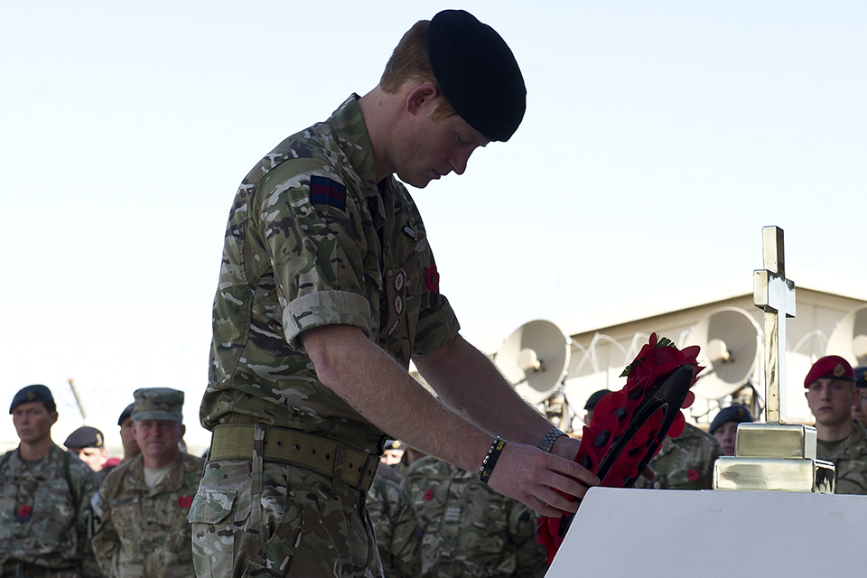 Prince Harry lays a wreath on Remembrance Sunday in Kandahar [Picture: Corporal Andrew Morris RAF, Crown copyright]