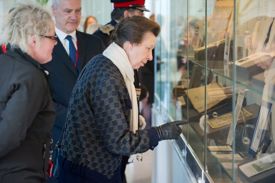 During the tour, The Princess Royal met key staff from the archive’s operations team, who described how the documents were prepared, indexed, stored in a series of secure pods, with humidity and temperature kept stable to minimise the potential for deterioration. Mr Peattie addressed assembled guests and staff before inviting Her Royal Highness to unveil the plaque.