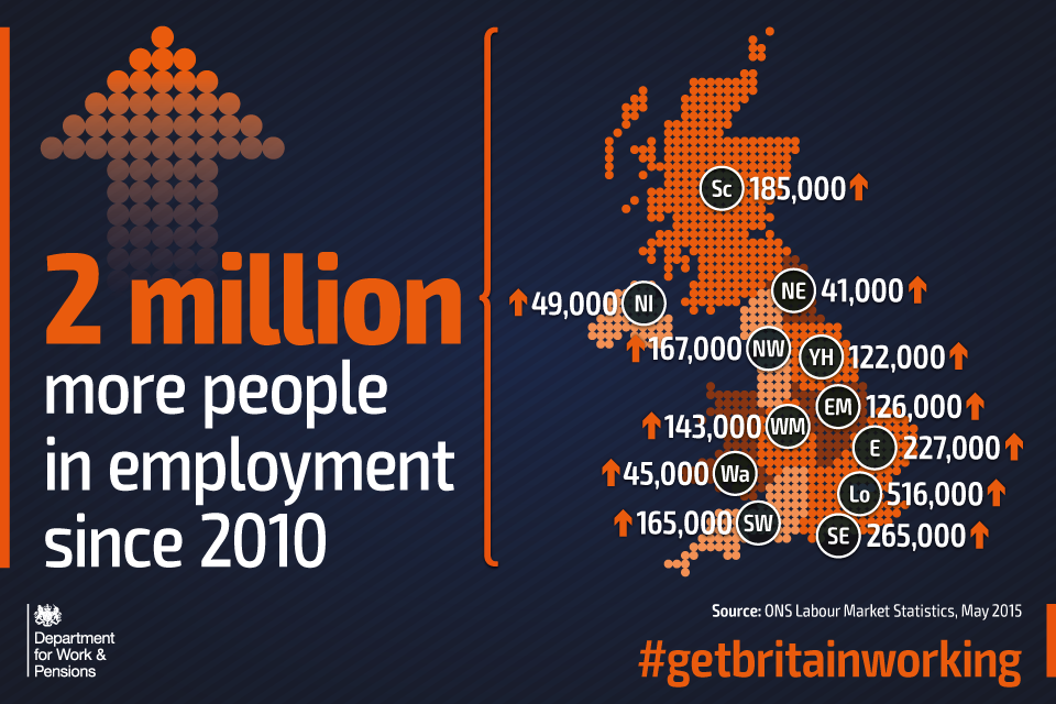 - there are 1 million fewer people claiming the main out of work benefits than in 2010