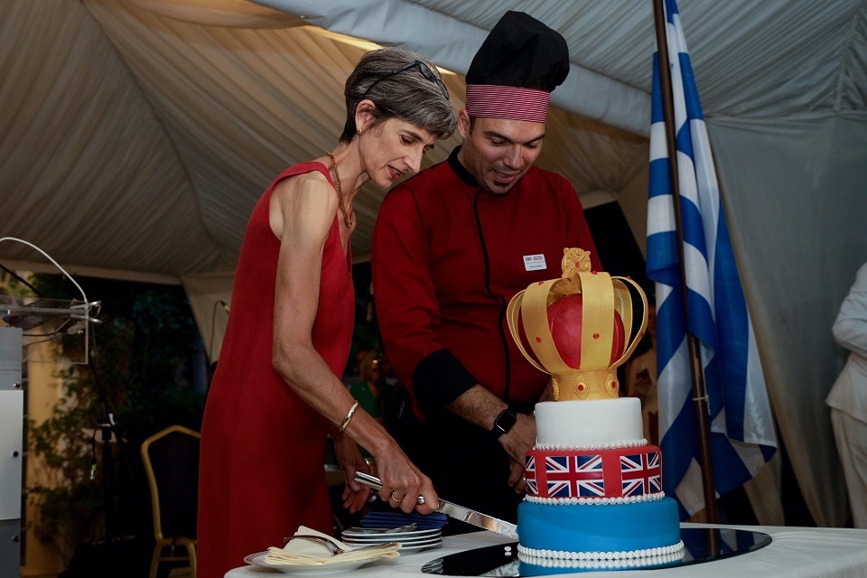 As is customary, the speeches were followed by the National Anthems of Greece and the United Kingdom, which were performed by the Greek Navy Light Orchestra. The Ambassador then proposed a toast to the President of the Hellenic Republic and to her majesty Queen Elizabeth II and proceeded to the cutting of the Queen’s birthday cake.