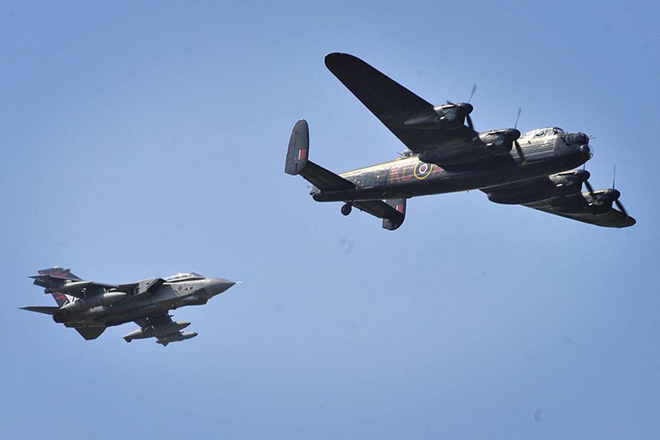 A Tornado GR4 from 617 'Dambusters' Squadron with an Avro Lancaster bomber from the RAF Battle of Britain Memorial Flight [Picture: Senior Aircraftman Lee Matthews, Crown copyright]