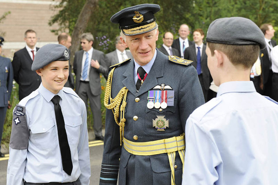 Chief of the Air Staff Air Chief Marshal Sir Stephen Dalton with Air Cadets from 1350 (Fareham and District) Squadron at the Air Traffic Control Centre in Swanwick [Picture: Senior Aircraftman Ben Tritta, Crown Copyright/MOD 2012]