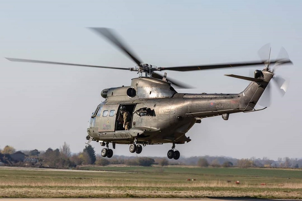 RAF Puma on the ground about to take off. MOD Crown Copyright 2020.