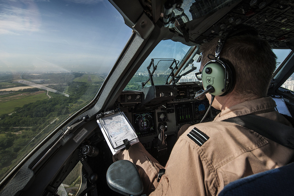 The C-17 prepares to touch down in Singapore for a refuelling stop en route to the Philippines [Picture: Sergeant Ralph Merry ABIPP RAF, Crown copyright]