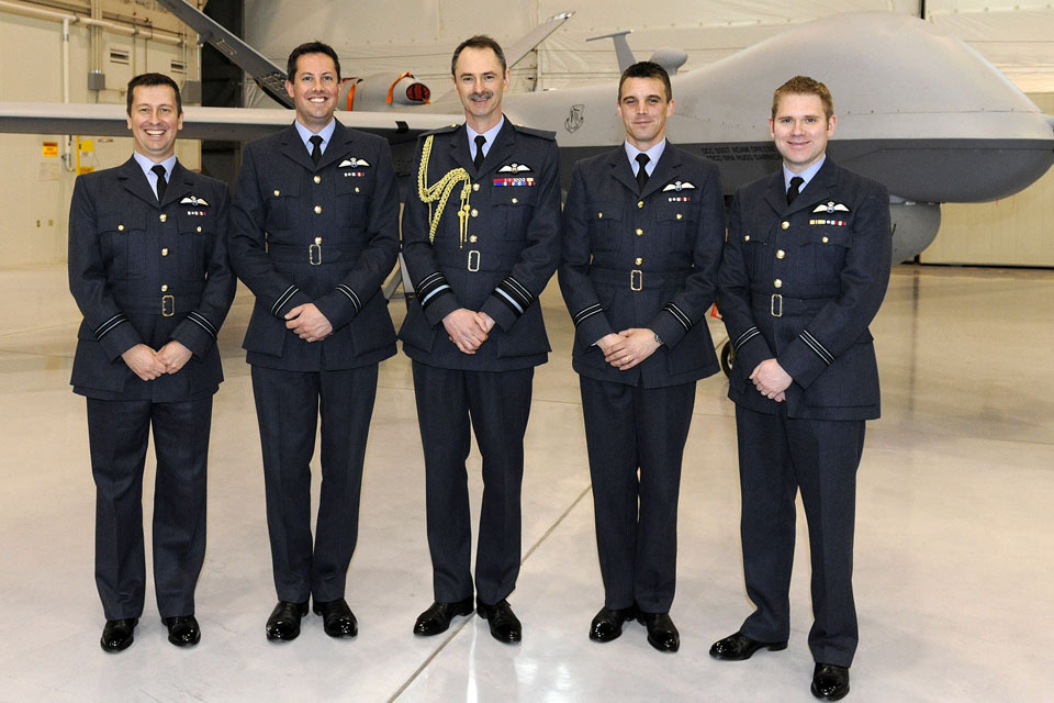 The RAF's Deputy Commander-in-Chief Operations, Air Marshal Richard Garwood, alongside 4 newly-graduated remotely-piloted aircraft pilots at Creech Air Force Base [Picture: Senior Aircraftwoman Gemma Nagi, Crown copyright 2013]