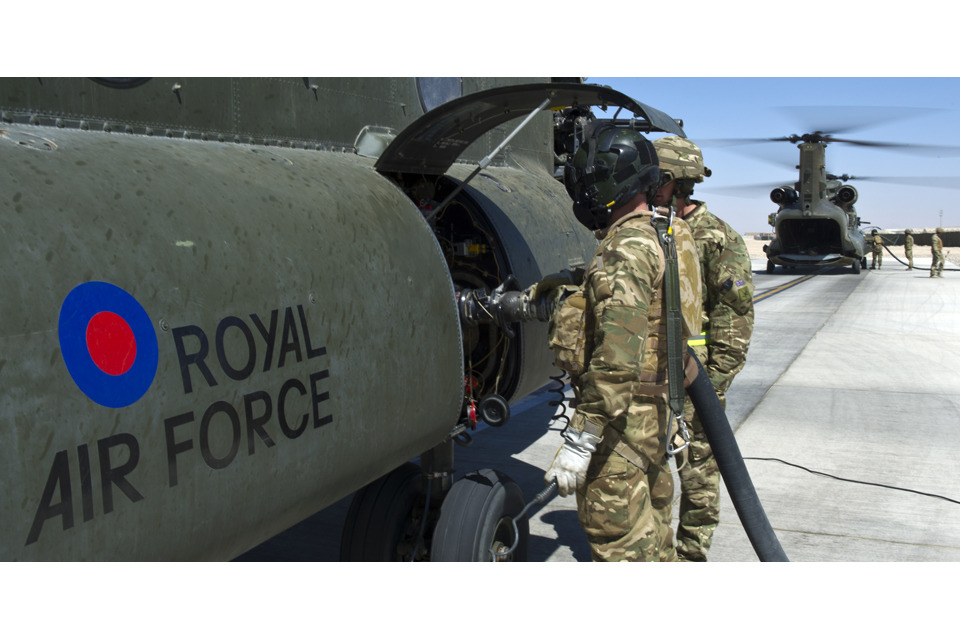 An RAF Chinook helicopter is refuelled [Picture: Sergeant Dale Hunt RAF, Crown copyright]