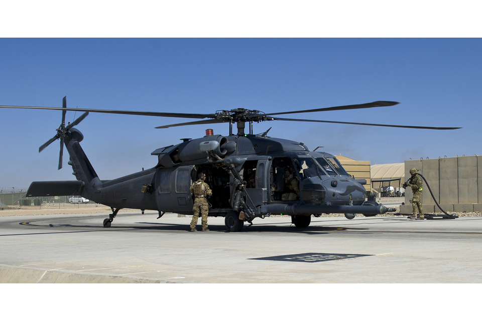 Corporal Neil Sinclair refuelling an American Black Hawk helicopter [Picture: Sergeant Dale Hunt RAF, Crown copyright]