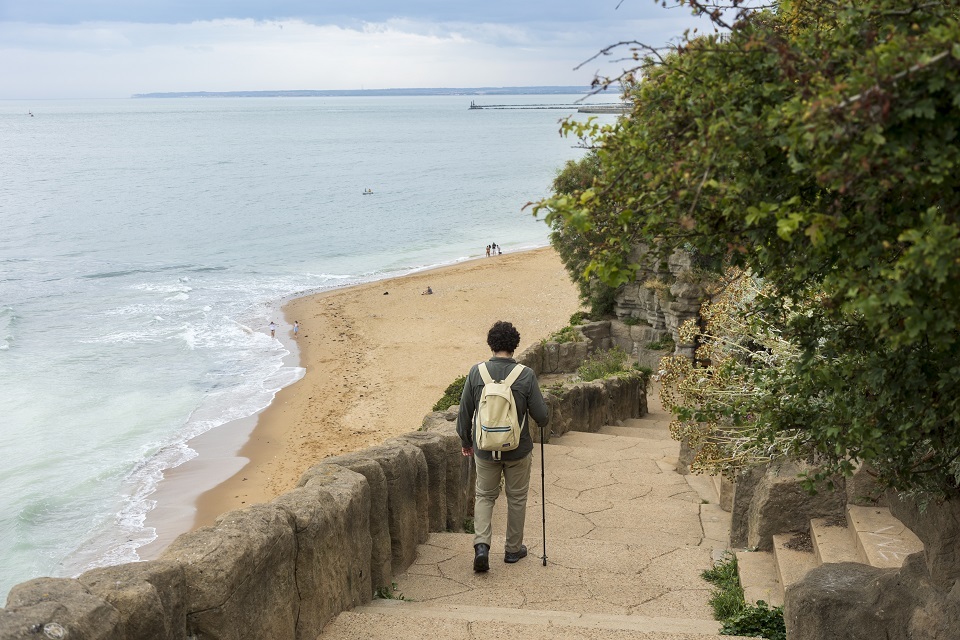 Carrying along the undercliff promenade beside Stone Bay beach, the trail goes up to the clifftop again. Stone Bay beach is one of the Isle of Thanet’s 10 award winning beaches.