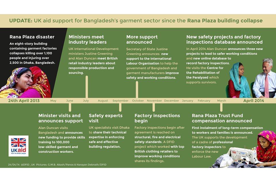 Infographic: A timeline of UK aid since Rana Plaza - click here for full size version